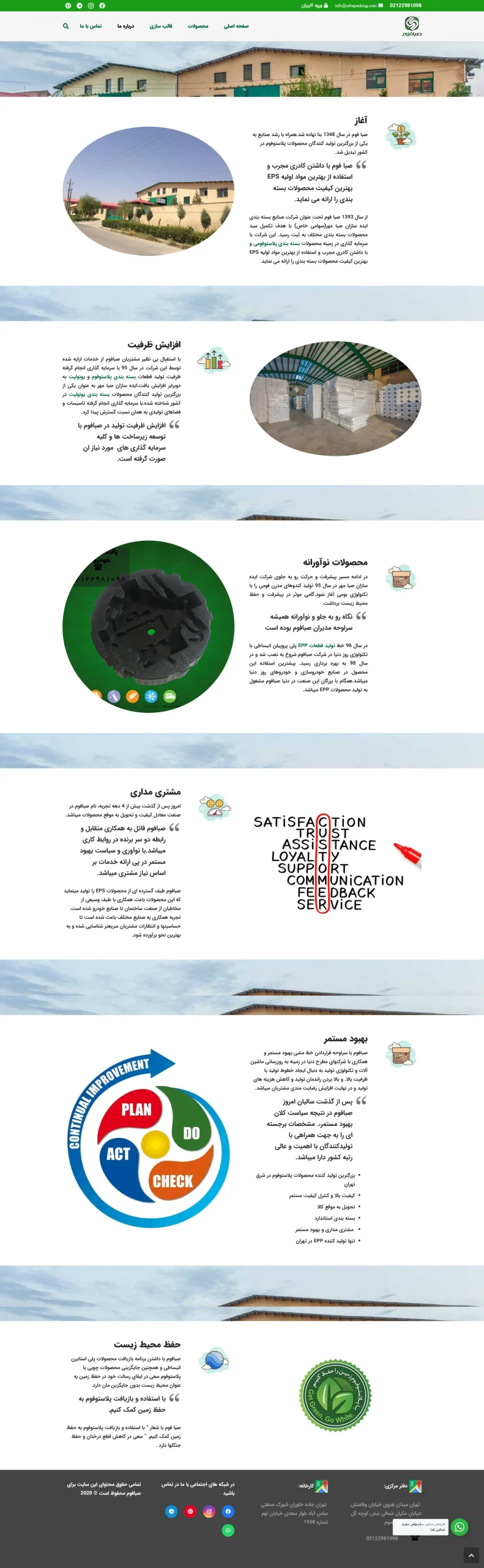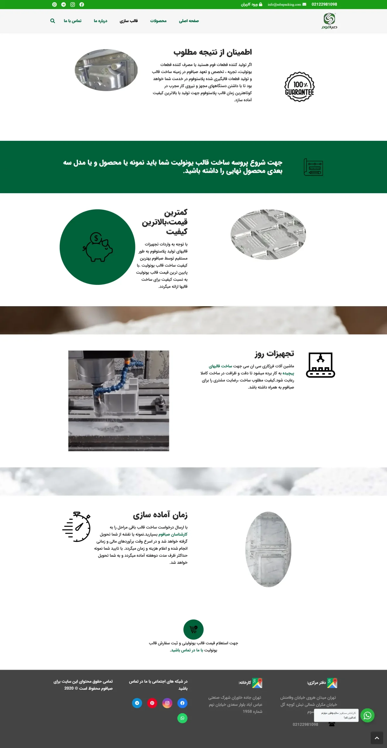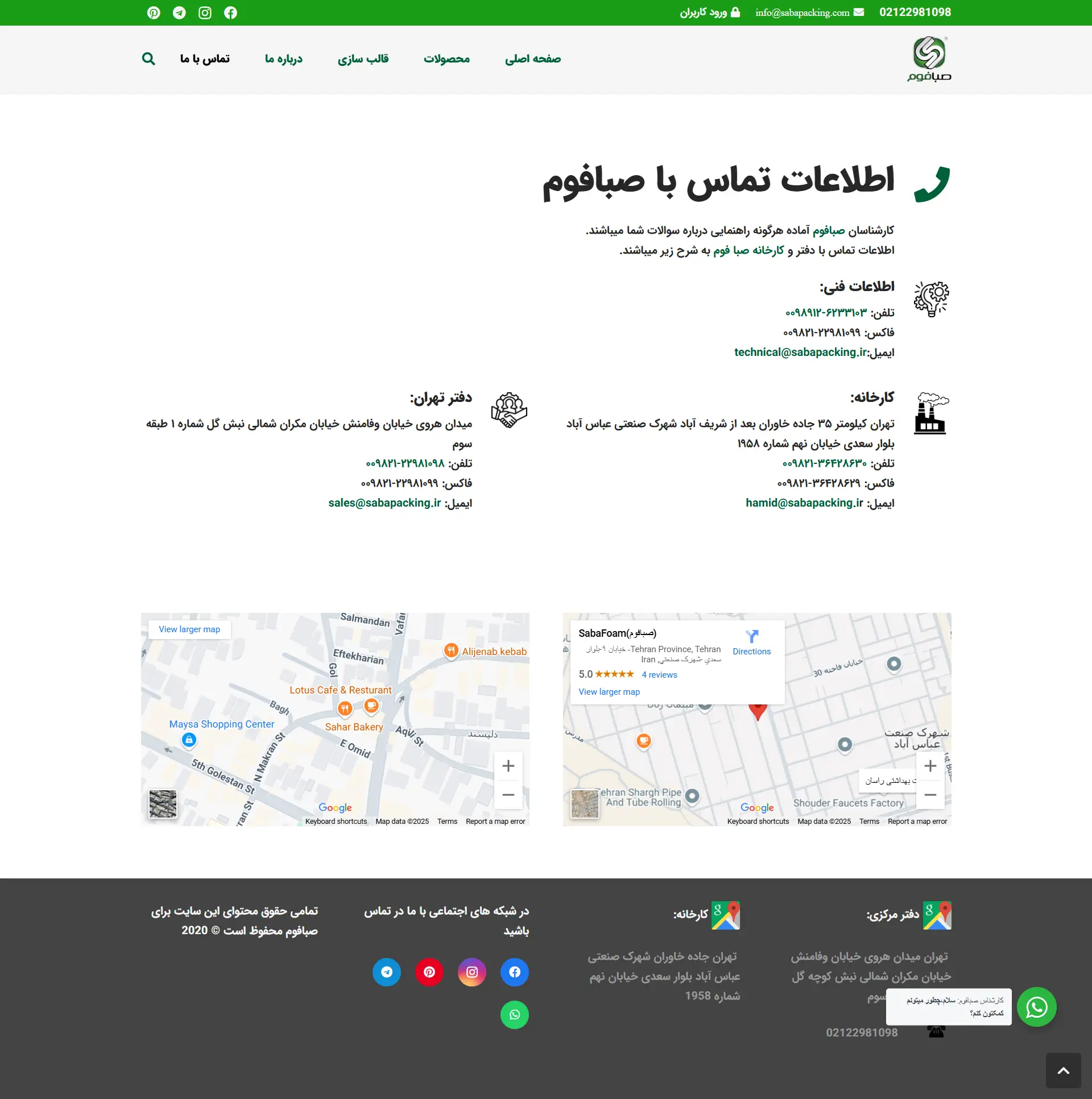 - تماس با ما: فرم تماس، اطلاعات تماس و نقشه موقعیت مکانی برای ارتباط آسان با شرکت.